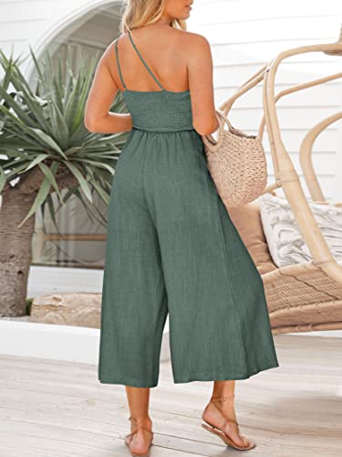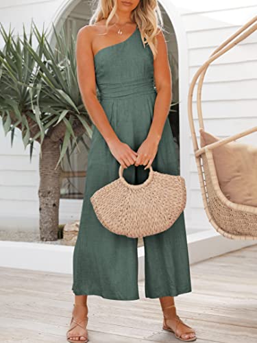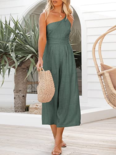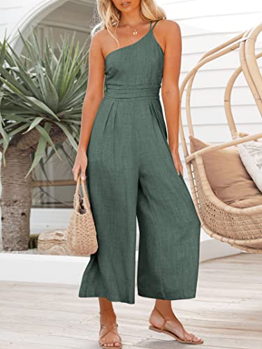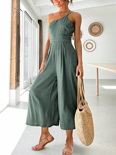 Specification: ANRABESS Women’s Summer Straps One Shoulder High Waist Dressy Casual Wide Leg Linen Jumpsuit Romper Beach Travel Outfits