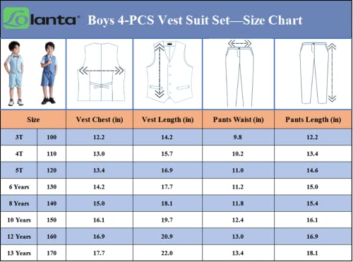 Specification: LOLANTA Boys Vest Tuxedo Suit Wedding Ring Bearer Outfits 4PCs Dress Clothes Vest Shirt Shorts Bow Tie