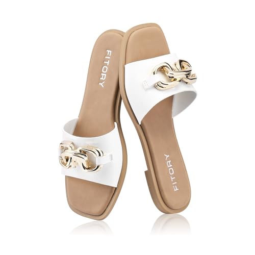 Specification: FITORY Women’s Flat Sandals Fashion Slides With Soft Leather Slippers for Summer Size 6-11