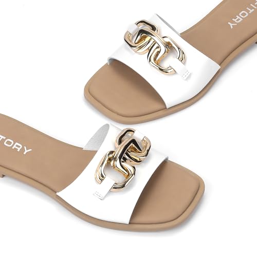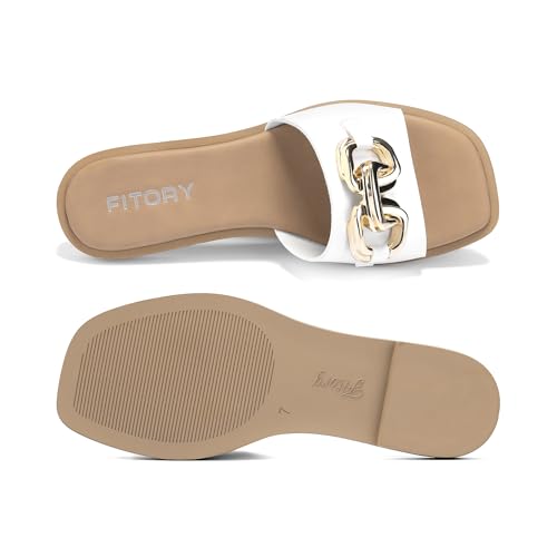 FITORY Women’s Flat Sandals Fashion Slides With Soft Leather Slippers for Summer Size 6-11