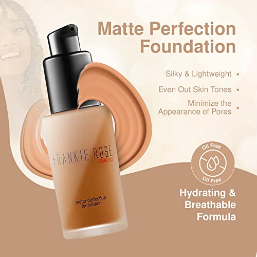 Frankie Rose Cosmetics Matte Perfection Foundation Makeup – Long-Lasting, Hydrating Foundation for Semi-Matte Finish – Full Coverage for All Skin Types – (Olive) 1.0 US fl oz / 30 ml