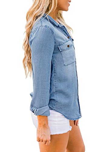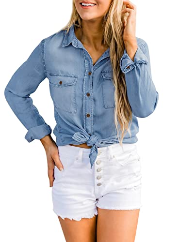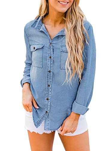 LookbookStore Women’s Long Sleeve Collared Shirt Button Down Denim Blouse Tops