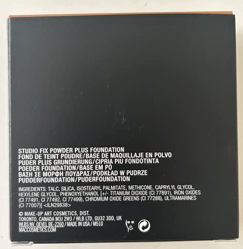 Details & care: What it is: A one-step foundation that gives skin a smooth, ultra-matte finish with buildable coverage and a velvety texture that lets skin breathe. Who it’s for: All skin types, though especially ideal for those with oily skin. What it does: M∙A∙C Studio Fix Powder Plus Foundation is long-wearing, color-true, non-caking, non-streaking and non-settling—all for 12 hours. This pressed powder foundation is available in M∙A∙C’s most inclusive range of colours. The formula immediatly reduces appearance of pores and helps controil oil and shine for up to eight hours. It features stay-true color that’s sweat- and humidity-resistant, and perfect for photos. How to use: Apply this matte powder foundation to well-moisturized and prepped skin with a fluffy brush, like the 129S Brush (sold separately), or try the 109S Brush (sold separately) for lighter coverage. Apply with the included sponge applicator for more coverage. If using the sponge, make sure to replace it every few weeks and store it in the compartment underneath the powder instead of storing in on top of the powder. Pro tips: Try finishing your application with a light veil of Fix+ (sold separately) to give skin a fresh appearance. 0.52 oz. Paraben-free; phthalate-free; sulfate-free; retinyl palmitate-free; mineral oil-free; formaldehyde-free; hydroquinone-free; triclosan-free; coal tar-free; toluene-free Nonacnegenic Made in the USA Item #10895U Ingredients Talc, Silica, Isostearyl Palmitate, Methicone, Caprylyl Glycol, Hexylene Glycol, Phenoxyethanol, [+/- Titanium Dioxide (Ci 77891), Iron Oxides (Ci 77491, Ci 77492, Ci 77499), Chromium Oxide Greens (Ci 77288), Ultramarines (Ci 77007)]. Ingredients are subject to change at the manufacturer’s discretion. For the most complete and up-to-date list of ingredients, refer to the product packaging