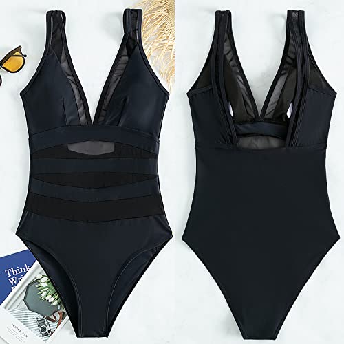 Specification: SOLY HUX Women’s Contrast One Piece Swimsuits V Neck Backless Bathing Suits Mesh Sheer Swimwear Monokini